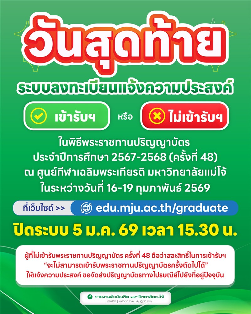 กำหนดส่งบทความ: ภายในวันที่ 31 ธันวาคม 2568 ทั้งนี้สามารถส่งบทความได้ถึงวันที่ 15 มกราคม 2569อัตราค่าลงทะเบียน ลงทะเบียนภายในวันที่ 20 มีนาคม 2569• อาจารย์/นักวิจัย/บุคคลทั่วไป: 3,500 บาท• นักศึกษา: 2,500 บาท