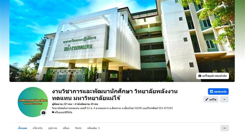 ติดตามได้ที่ Facebook : งานวิชาการและพัฒนานักศึกษา วิทยาลัยพลังงานทดแทน มหาวิทยาลัยแม่โจ้