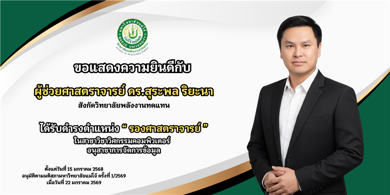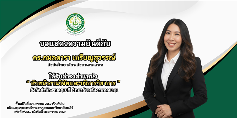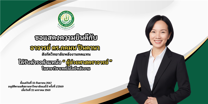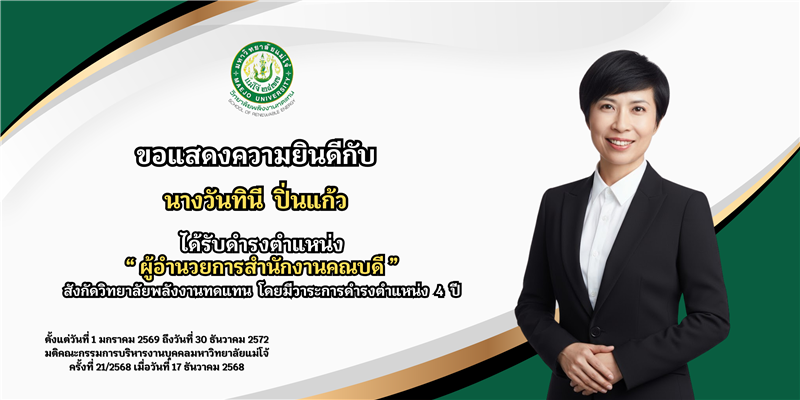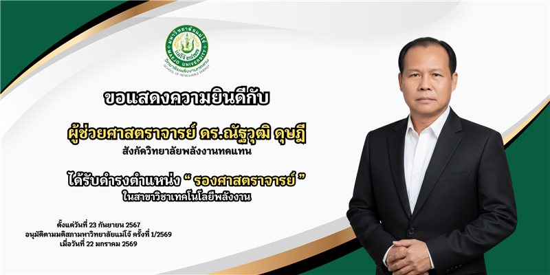 วิทยาลัยพลังงานทดแทน ขอแสดงความยินดีกับบุคลากรที่ได้รับตำแหน่งทางวิชาการ และตำแหน่งที่สูงขึ้น จำนวน 5 ราย
