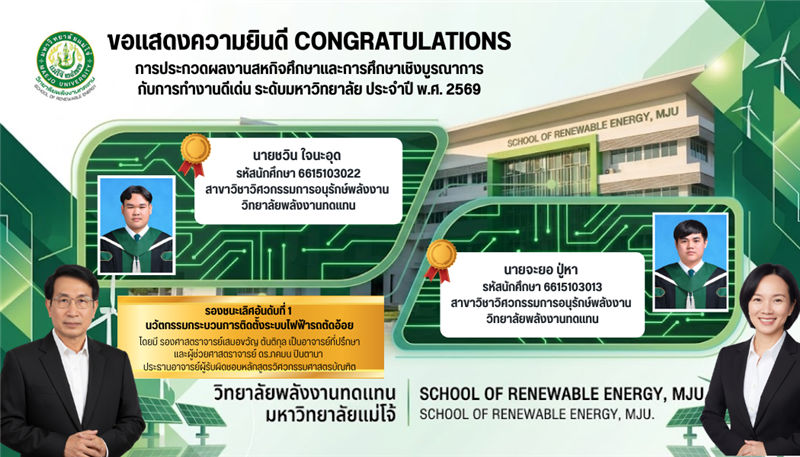 ผลการประกวดผลงานสหกิจศึกษา ประจำปี 2569 สำนักบริหารและพัฒนาวิชาการ ฝ่ายสหกิจศึกษาและพัฒนาอาชีพ มหาวิทยาลัยแม่โจ้